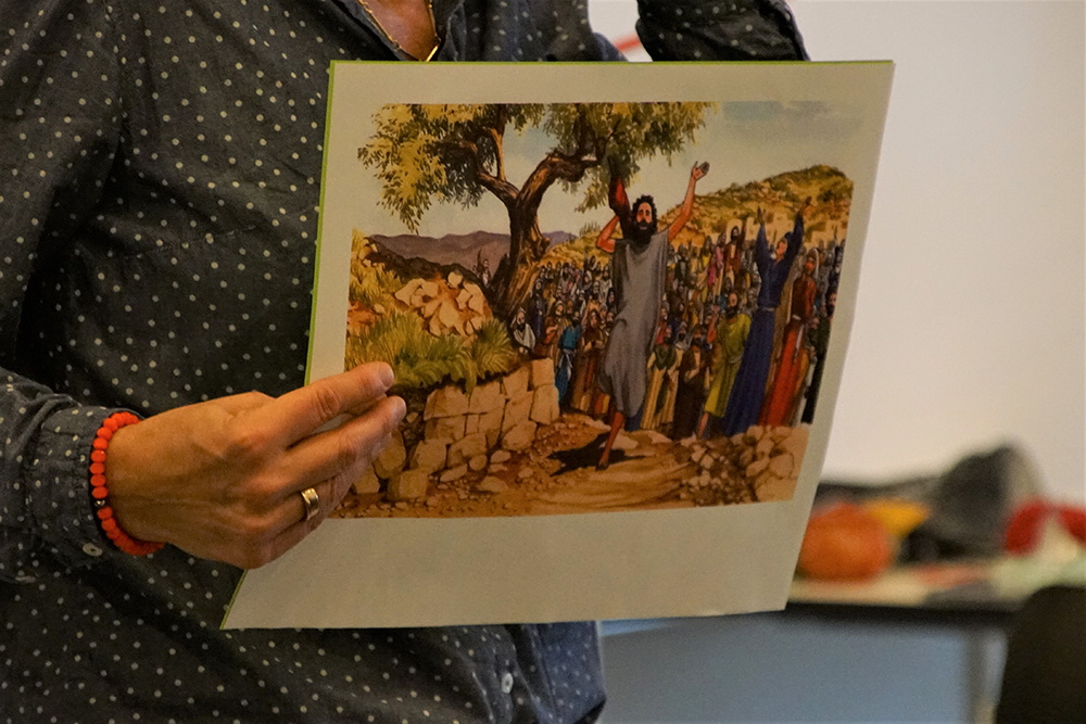 En spændende dag med stor medleven og lydhørhed, hvor alle fik lov at opleve evangeliet med øjne, ører, næse, mund og hænder.