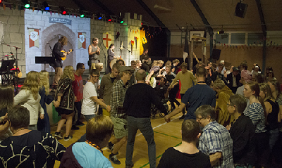 Weekenden blev danset i gang med middelalder-dans fredag aften og efterfølgende Talentshow. Lørdag var der masser af aktiviteter i løbet af dagen, og om aftenen var der festaften, Talentshow og midnatslovsang. Til søndagens gudstjeneste fik vi besøg af en kirkeklovn, og sluttede med alle at “gå på livets vej” rundt i hallen. Alt i alt en fantastisk middelalderfest med masser af sang og musik, alvor og sjov – og plads til alle.