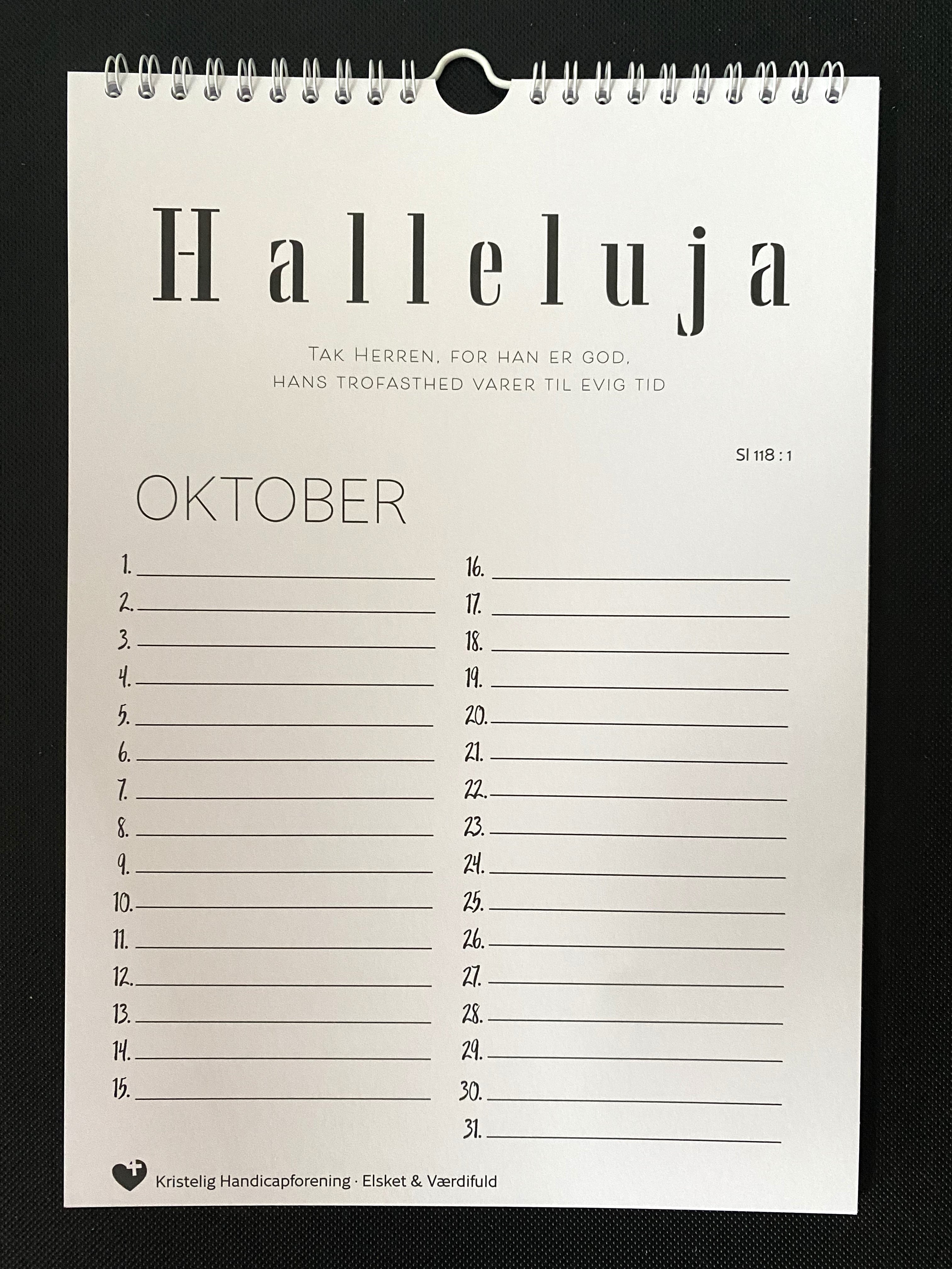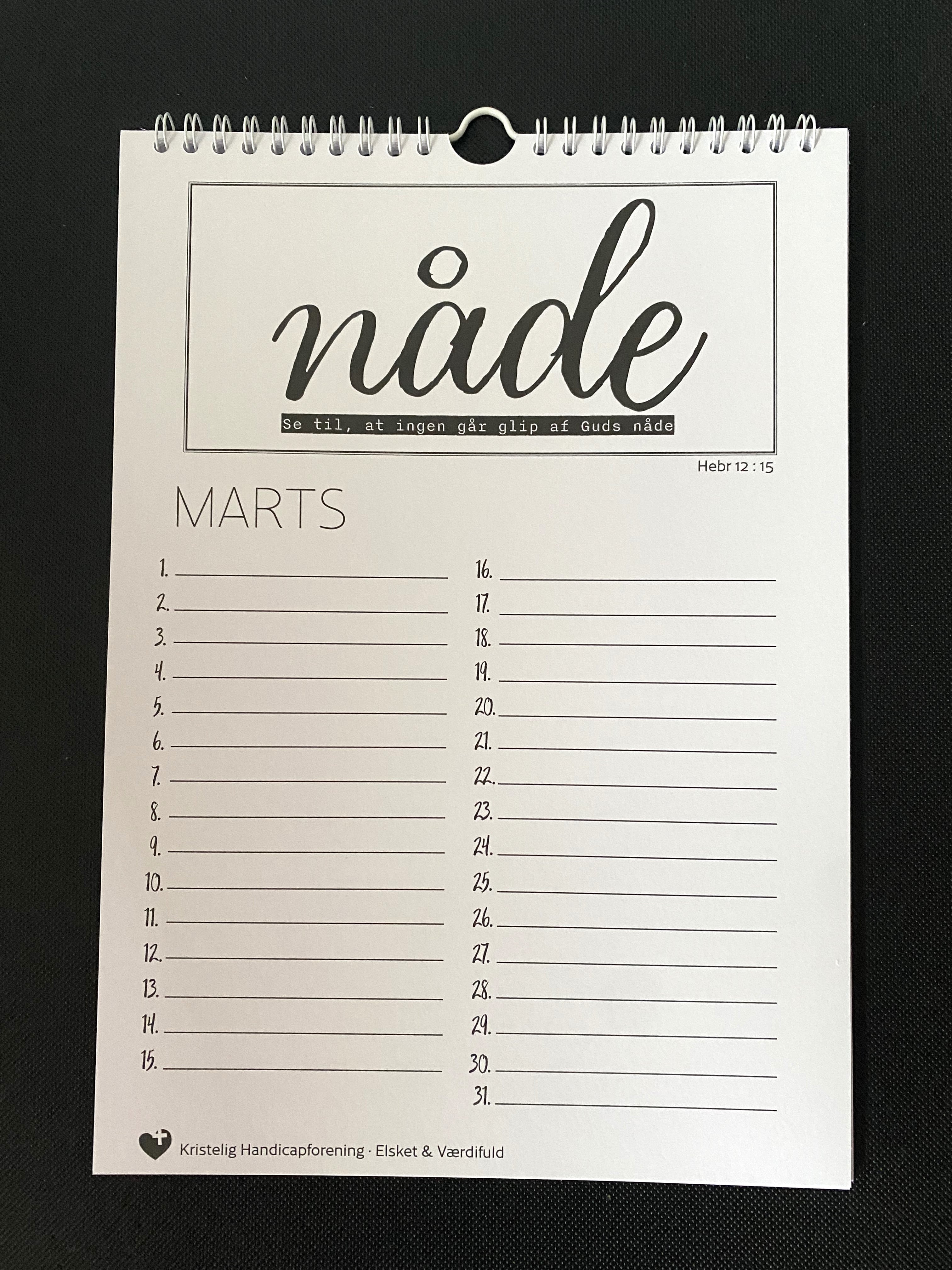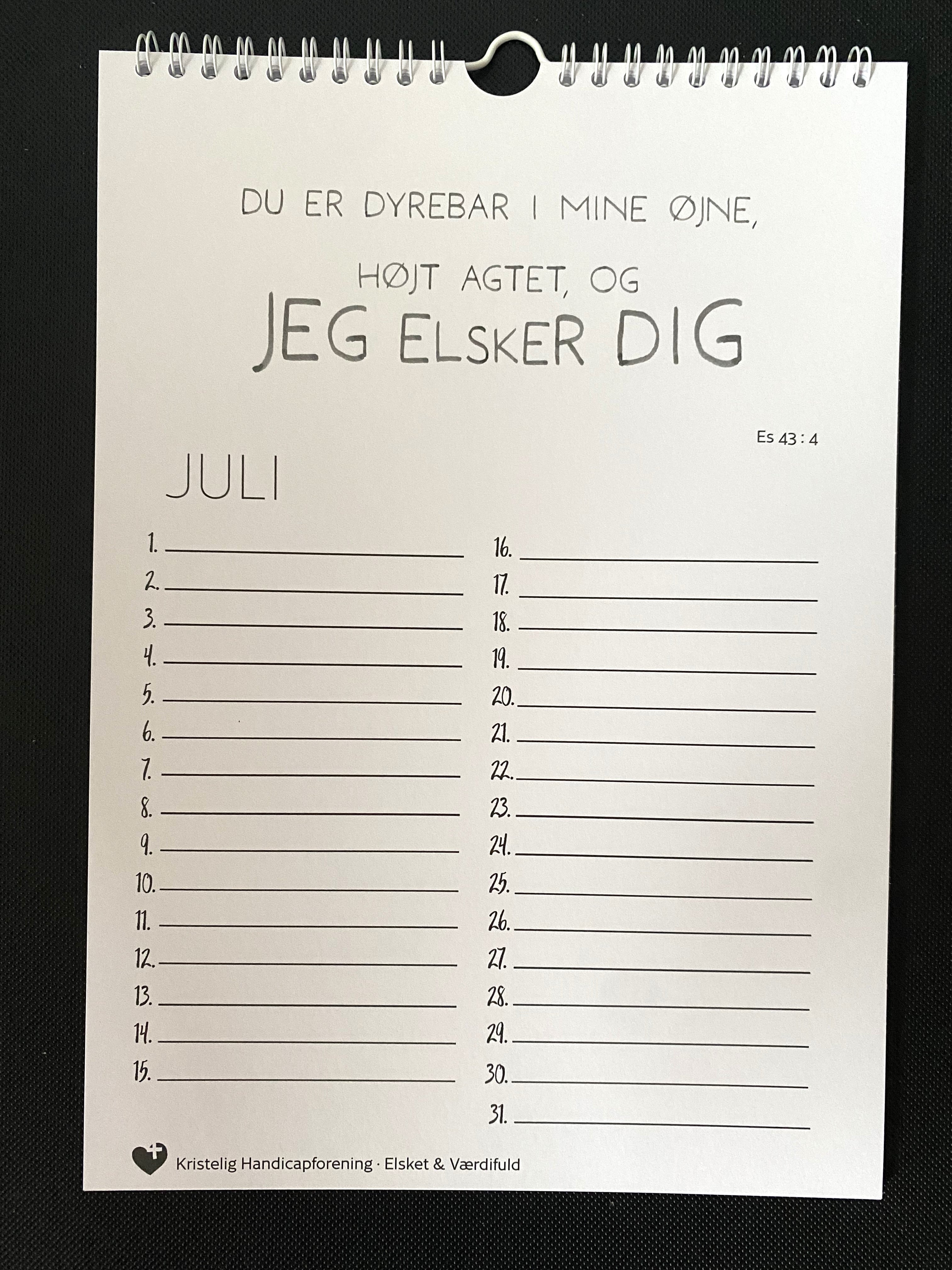Evighedskalender i kraftigt papir med forskellige opmuntrende bibelvers til hver måned sat grafisk op. Her kan du se et udpluk af nogle af kalendermånederne.